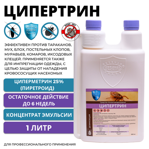 Ципертрин средство от тараканов, клопов, блох, муравьев, клещей, 1 литр