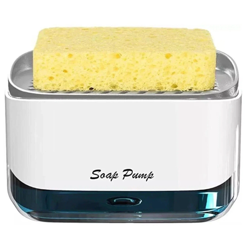Диспенсер с губкой / Дозатор для моющего средства или жидкого мыла для кухни / Серый механический диспенсер для губки / Диспенсер кухонный