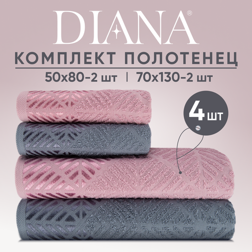 Полотенца махровые Diana Трапецио, цвет: Сакура/Океан