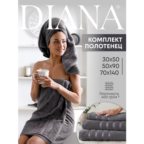 Набор полотенец махровых (30х50 см, 50х90 см, 70х140 см), Diana, цвет: Туманный серый