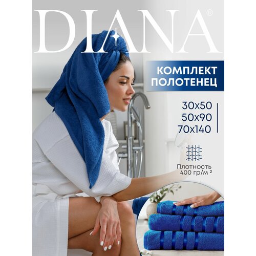 Полотенце махровое 3 шт, 30х50, 50х90, 70х140, Diana, Нуар, цвет: Индиго