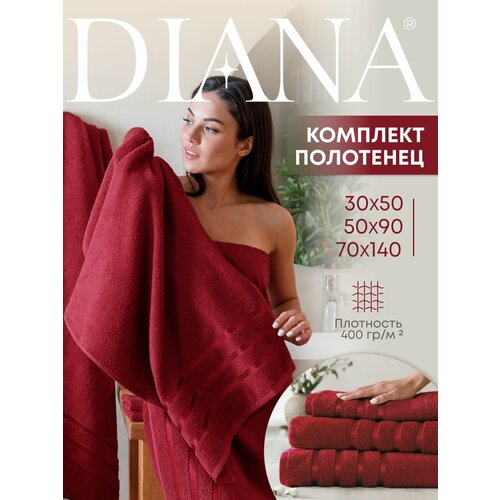 Набор полотенец махровых (30х50 см, 50х90 см, 70х140 см), Diana, цвет: Гранат