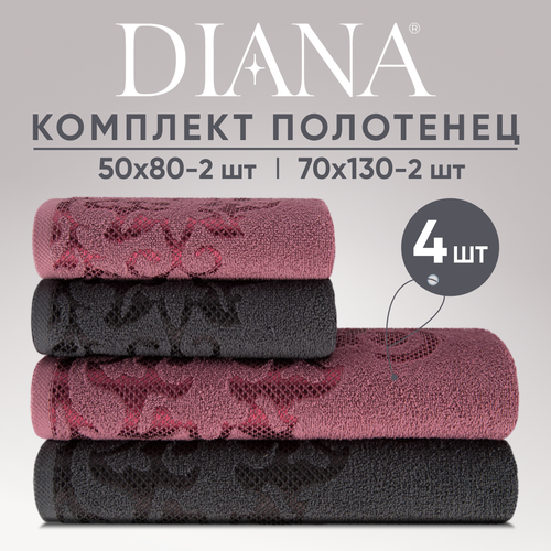 Набор полотенец махровых (30х50 см, 50х90 см, 70х140 см), Diana, цвет: Черный жемчуг
