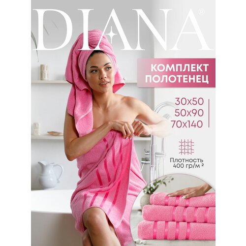 Набор полотенец махровых (30х50 см, 50х90 см, 70х140 см), Diana, цвет: Пикантный