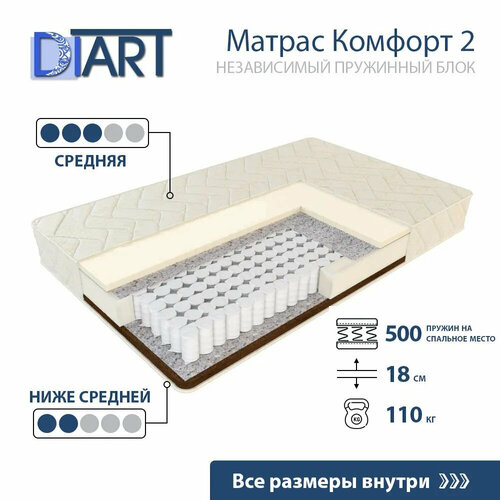 Матрас с независимыми пружинами Comfort-2 Duo двухсторонний хлопковый жаккард 70х200 Diart