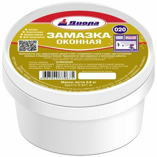 Герметик строительный-замазка Диола Д-020, оконный, белый, банка, 0.8кг, 1 шт.