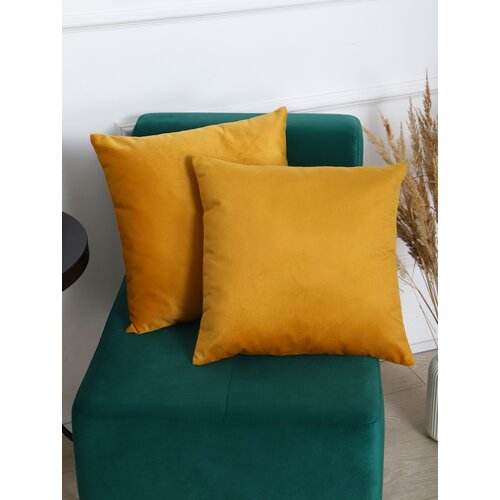 Подушка декоративная 40х40 см на диван 2шт с наволочкой на молнии со съемным чехлом, для гостиной детской спальни горчичная