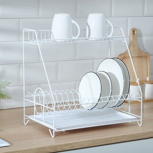 Сушилка для посуды/ Сушилка для посуды с поддоном 2-х ярусная, 24х40х38 см