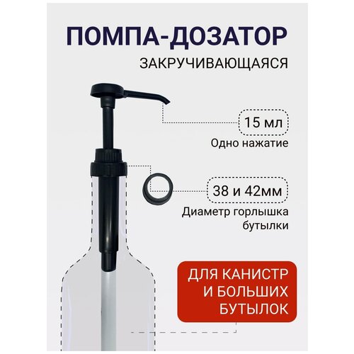 Помпа-дозатор универсальная для густых жидкостей, концентратов и топпингов с диаметром горлышка 38 мм и 42 мм, доза 15 мл