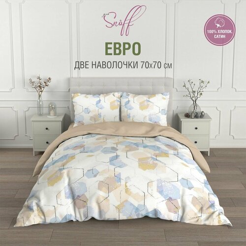 Постельное белье евро размер Для SNOFF сатин Бэйли, хлопок, наволочки 70*70 - 2 шт