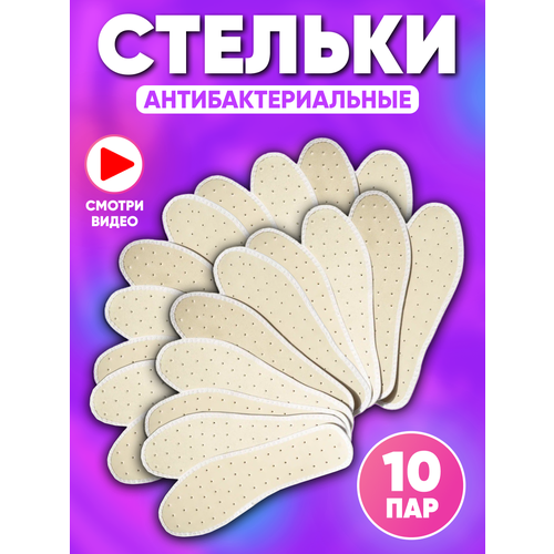 Стельки для обуви мужские, женские, антибактериальные. Одноразовые от пота и запаха ног, антизапах. Набор из 10 пар, Размер 36 RU = 38 CN.