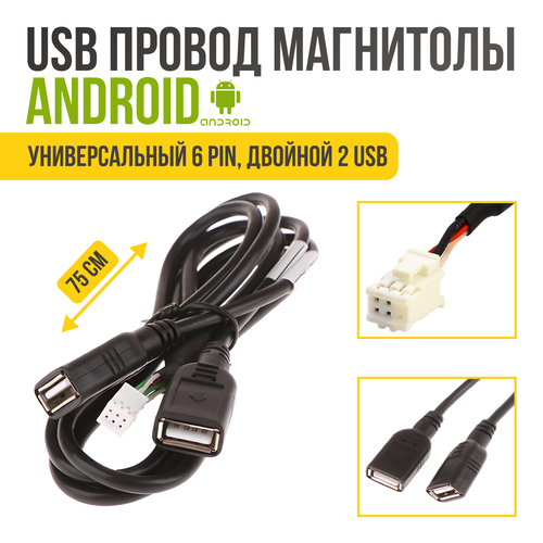 USB кабель 6 PIN магнитолы Android, двойной. Разъем узб провод магнитолы андроид 70 см