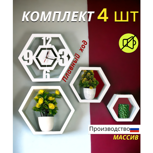 "Днкрадость" - набор из 4 шт Настенные полки соты и часы