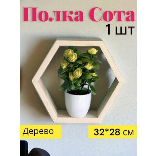 Полка настенная, белые полки соты навесные, Комплект полок 3 шт, деревянная навесная полка сота лофт, декорация панно