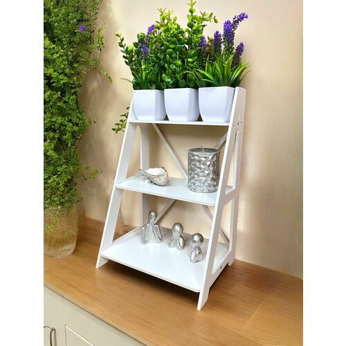 Этажерка трехярусная настольная деревянная 26*20*40 см, Белые сплошные полки