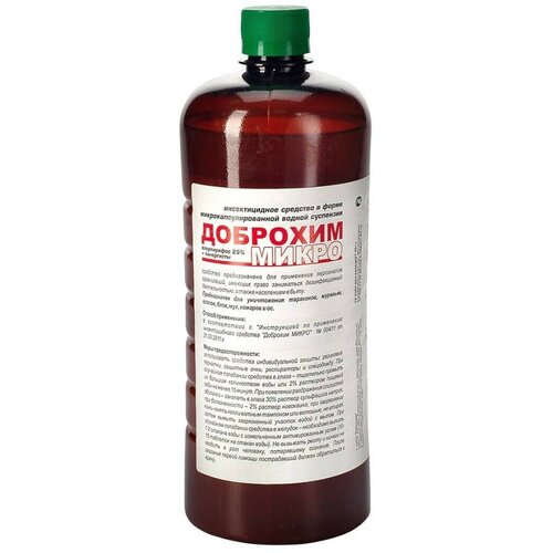 Доброхим микро 1л - используется для уничтожения клопов, тараканов, блох, комаров, мух и муравьев.