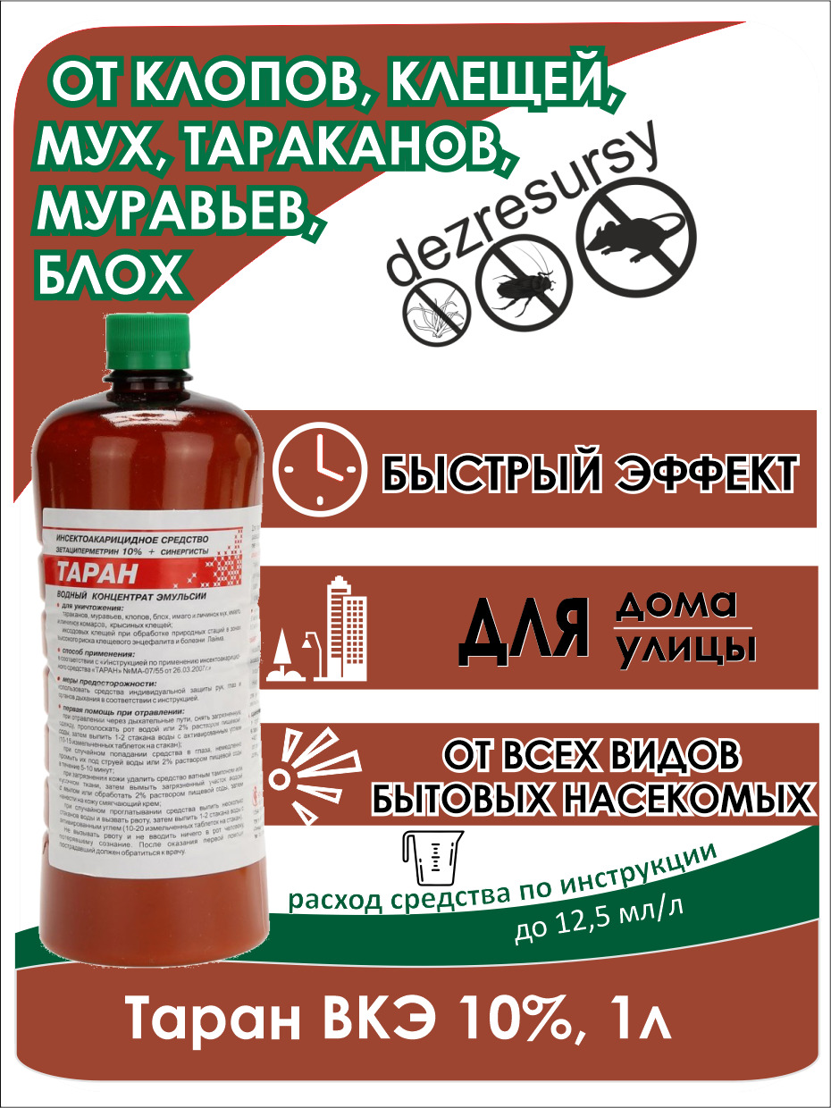 Таран средство от иксодовых клещей, комаров, тараканов, клопов, муравьев, блох, мух, 50 мл