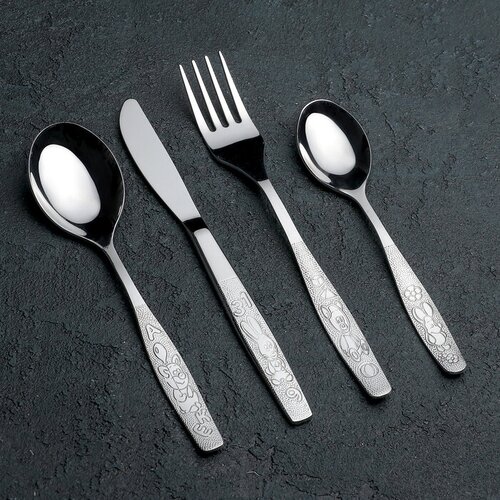 Набор столовых приборов Добросталь "Непоседа", 4 предмета, толщина 2 мм