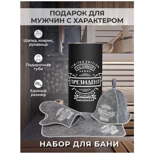 Доктор Баня Подарочный набор мужской для бани саун шапка коврик рукавица