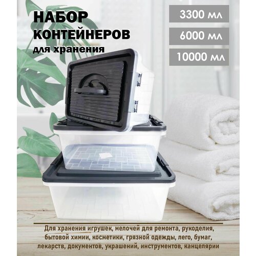 Набор контейнеров для хранения, 10+6+3,3 л, 3 шт. / ящик для хранения