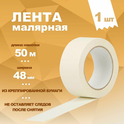 Лента клейкая малярная, легкоудаляемая, белая, 48 мм х 50 м