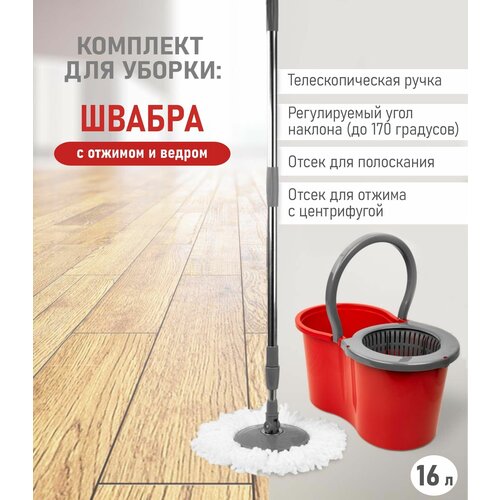 Комплект для уборки SPIN MOP: швабра с насадкой из микрофибры + ведро с отжимом, 16 л