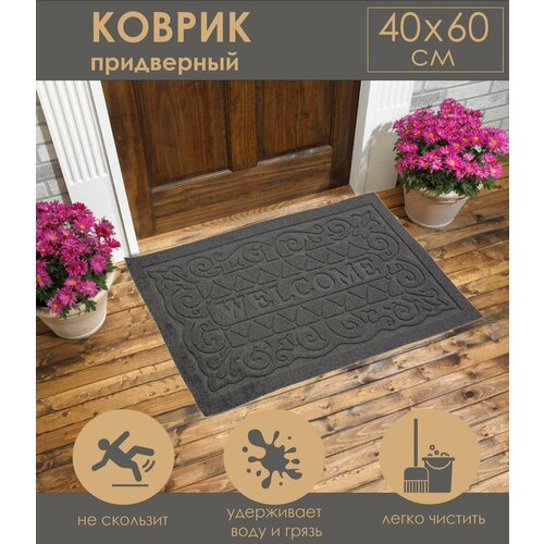 Коврик придверный "WELCOME" влаговпитывающий, 40*60 см / коврик в прихожую / входной коврик