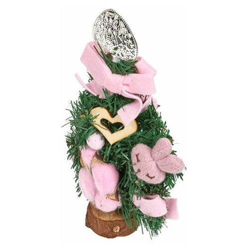 Ель новогодняя искусственная с украшениями (Заяц) на подставке 20 см
