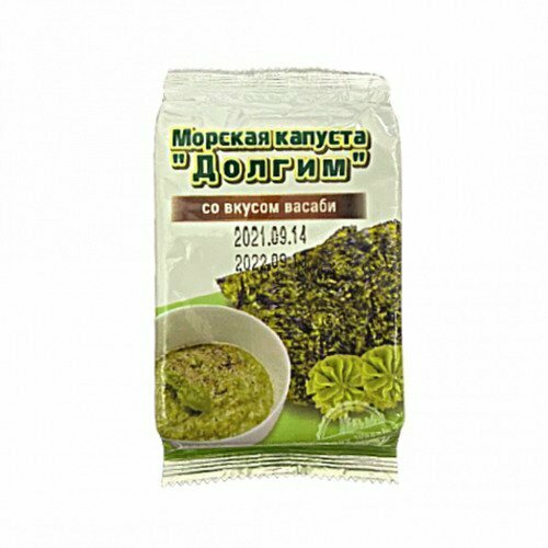 Чипсы Нори из морской капусты со вкусом васаби "ДолГим", 5 г, Корея