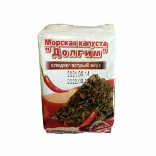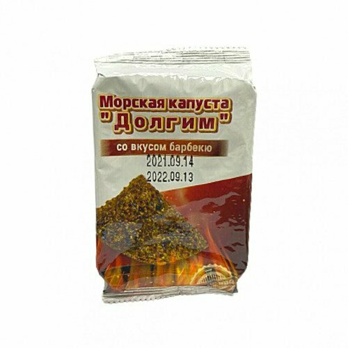 Чипсы Нори из морской капусты "Долгим", хрустящая обжаренная со вкусом барбекю, 5 гр, Корея