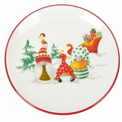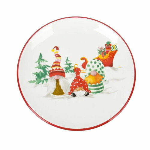 Блюдо сервировочное Dolomite Рождественские гномы, керамическое, d 20 см