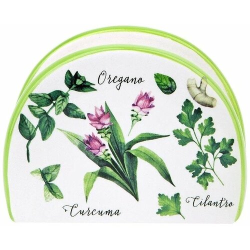 Салфетница кухонная Dolomite / Доломит Душистые Травы для сервировки стола, керамика белый с рисунком 105×50×90мм / аксессуары для кухни