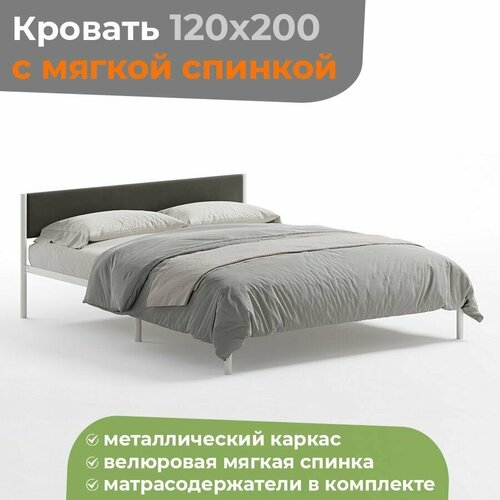 Кровать металлическая компактная 120х200 белая с темно-серой с мягкой спинкой