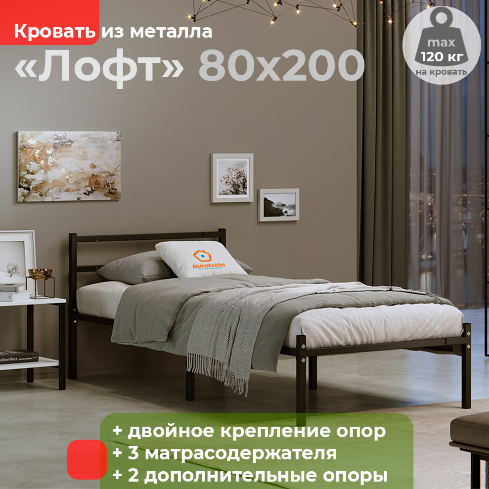 Кровать металлическая ДомаКлёво Лофт 80х200 серая