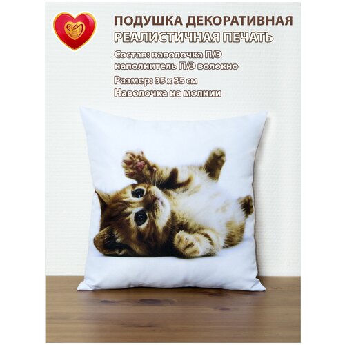 Подушка декоративная на диван 35х35 в подарок с фотопечатью котенок голубоглазый