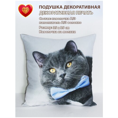Подушка декоративная на диван 35х35 в подарок с фотопечатью кот джентльмен