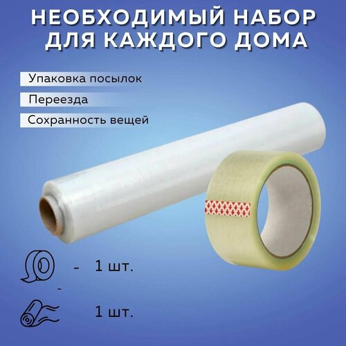 Набор для упаковки товаров и вещей - стрейч пленка (1 шт) + клейкий скотч (1 шт)