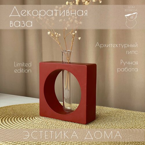 Ваза для цветов и сухоцветов, для декора из гипса с колбой Дом Besstressa, 11 см