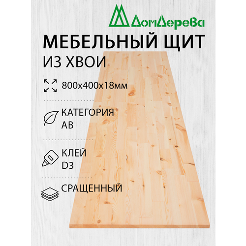 Мебельный щит "Дом Дерева" 800х400х18мм Хвоя АВ Сращенный