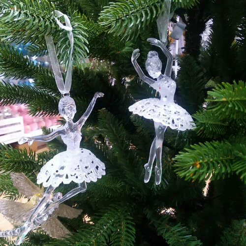 Елочные игрушки Балерина пластик 14 см прозрачная, набор 2 шт