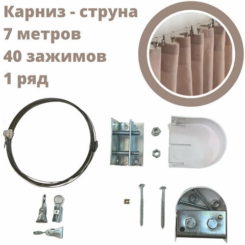 Карниз струнный 1 ряд с 40 пластиковыми зажимами и пластиковой крышкой, прямой 700 см (7 м)