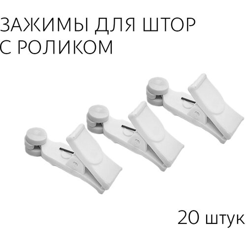 Зажим для штор с роликом пластиковый белый 20 шт/для потолочной шины