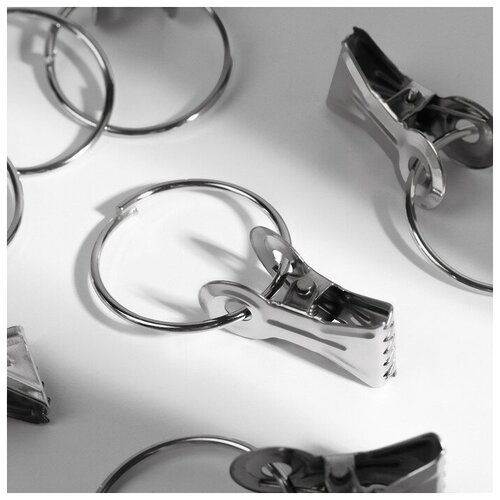 Зажим металлический для штор с кольцом Ракушка серебро 20 шт