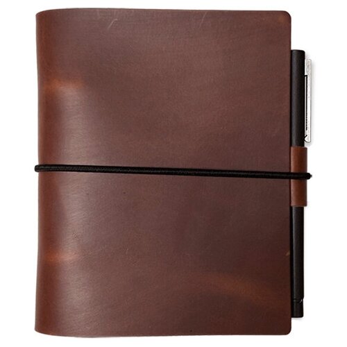 Кожаный блокнот А6 со сменным блоком на кольцах DOSTIEN на резинке темно-коричневый