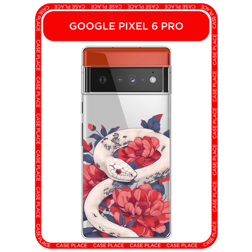 Чехол на Google Pixel 6 Pro / Гугл Пиксель 6 Pro с принтом Белая змея в цветах, прозрачный