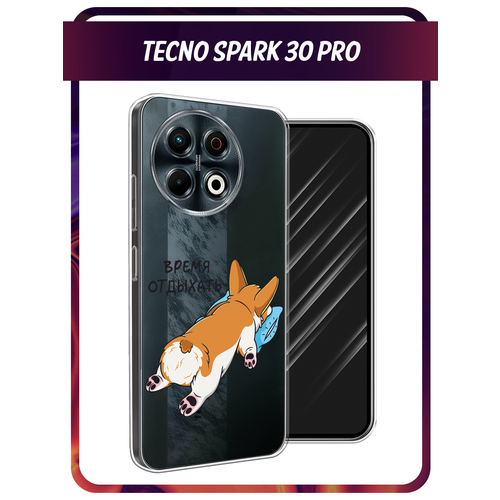 Чехол на Tecno Spark 30 Pro / Текно Спарк 30 Про с принтом Корги отдыхает, прозрачный