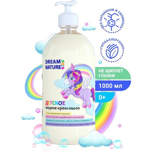 Детское жидкое крем - мыло DREAM NATURE KIDS "Алоэ-вера и белый чай" с натуральными экстрактами и Д-пантенолом 1 л