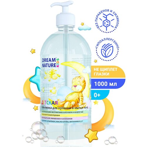 DREAM NATURE KIDS Гель-пенка для купания и мытья тела "Алоэ-вера и белый чай" детская, 1000 мл