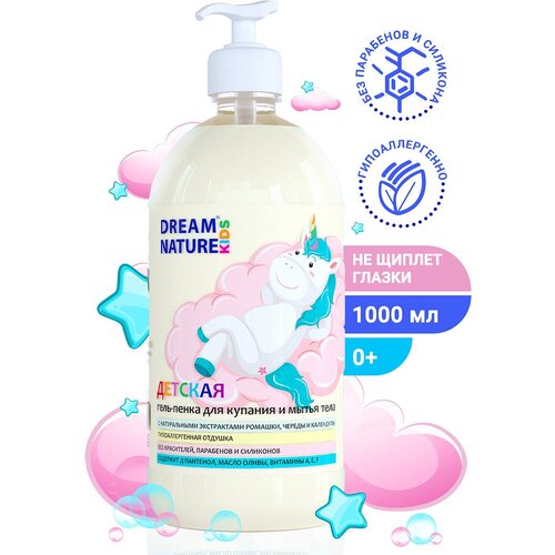 DREAM NATURE KIDS Детская гель - пенка для купания и душа "Ромашка, череда и календула", 1000 мл / 1 л