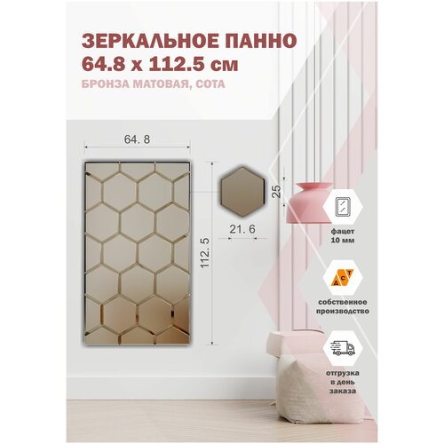 Зеркальная плитка ДСТ, панно на стену 64.8х112.5 см, цвет бронза матовая, форма сота 25х21.6 см.